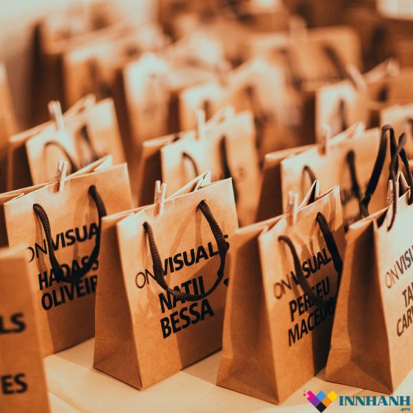 - Thiết kế logo: In logo thương hiệu của bạn lên túi giấy để tăng nhận diện thương hiệu.