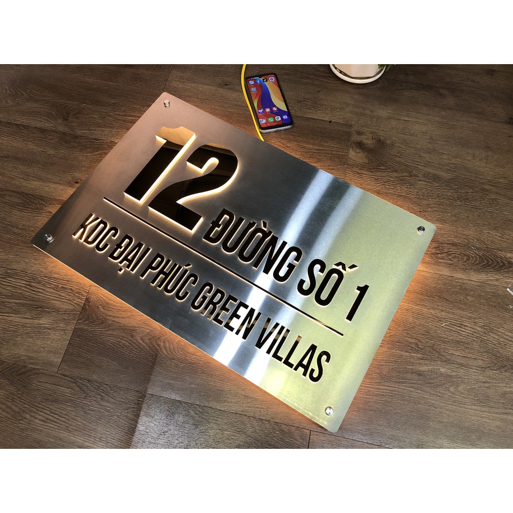 * Màu sắc: Mặt inox xước trắng – chữ inox vàng, chân mica hắt sáng