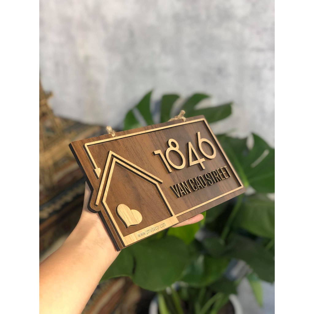 BẢNG, BIỂN SỐ NHÀ. Gỗ 2 màu tương phản, chi tiết dán nổi, BSN-QC24H014