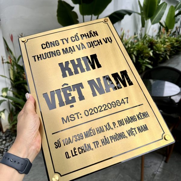 BẢNG, BIỂN TÊN CÔNG TY, Inox 304 vàng xước cắt âm bản.BCT-QC24H004