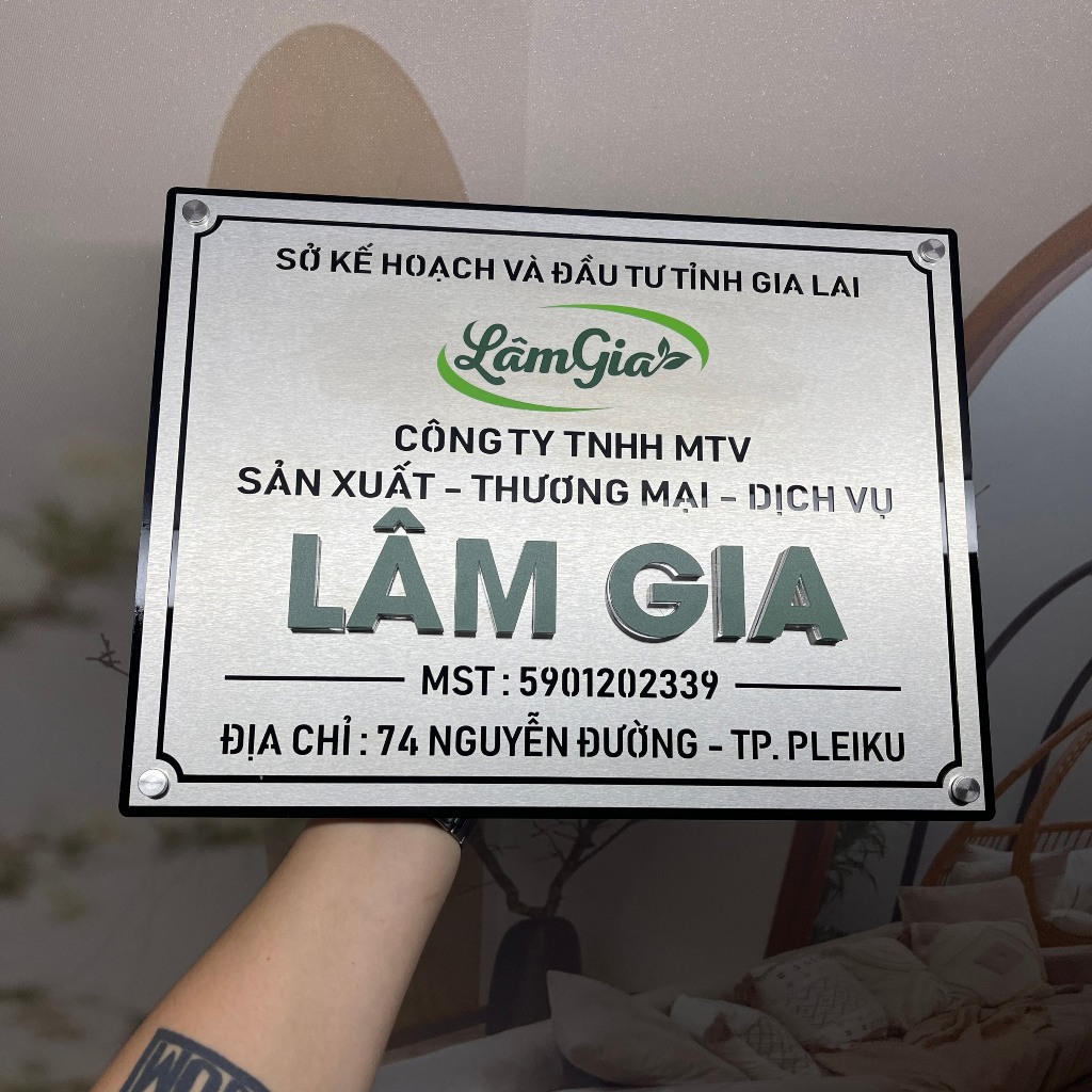 Biển công ty Inox 304 bạc xước hiện đại 10x20cm – Alo Bảng Hiệu