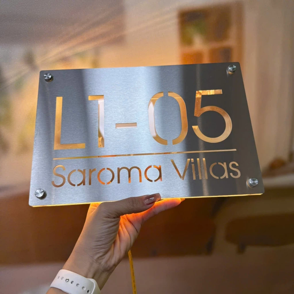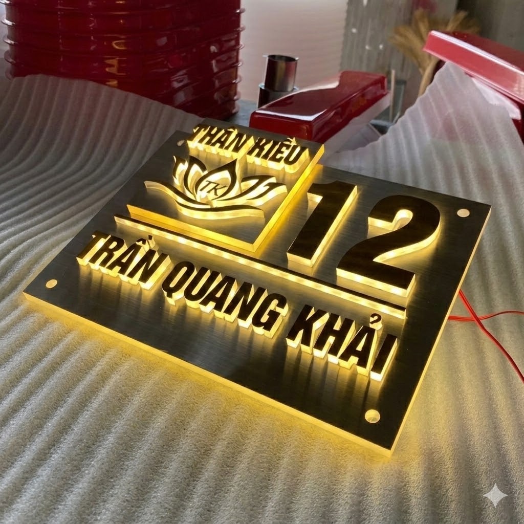 • Hiệu ứng: Số nổi 3D hắt ánh sáng dịu nhẹ qua chân mica, tạo vẻ đẹp đẳng cấp ban đêm.