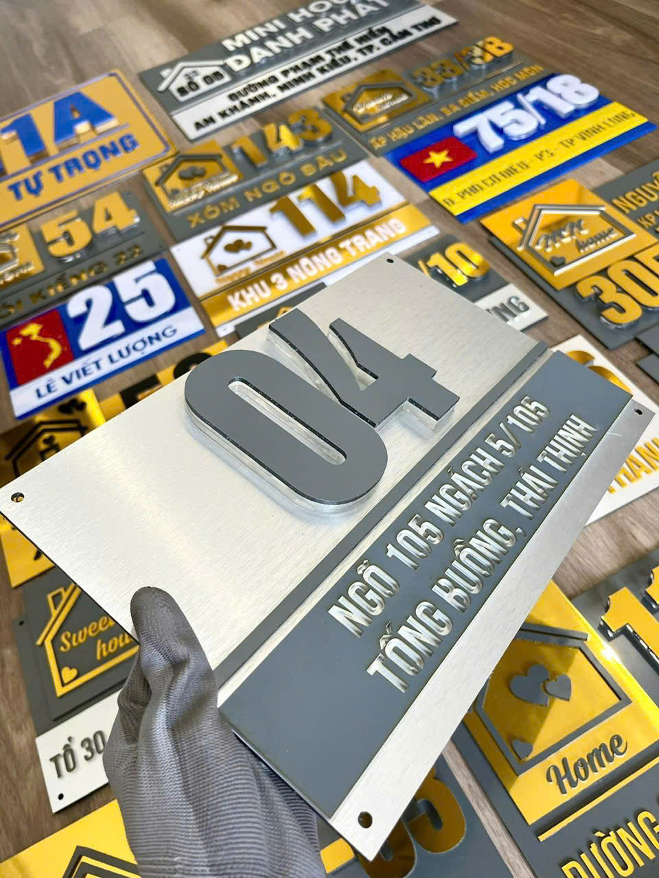 Nếu bạn yêu thích phong cách tối giản nhưng vẫn muốn sự độc đáo và tinh tế, Biển số nhà Mica đen khắc CNC chìm là sự lựa chọn tuyệt vời. Khác với phương pháp in hay dán thông thường, công nghệ khắc CNC chìm tạo nên những đường rãnh sắc nét trực tiếp trên bề mặt Mica, mang lại vẻ đẹp bền vững và cao cấp cho mặt tiền ngôi nhà.